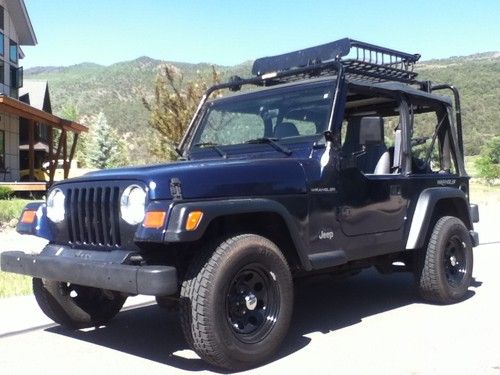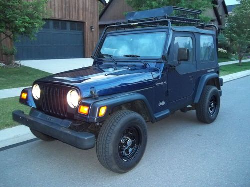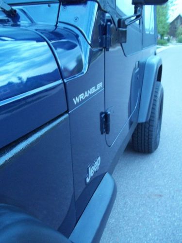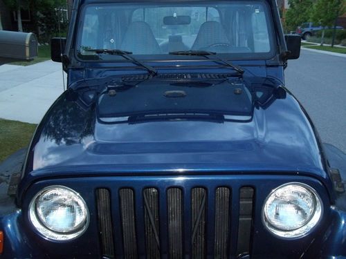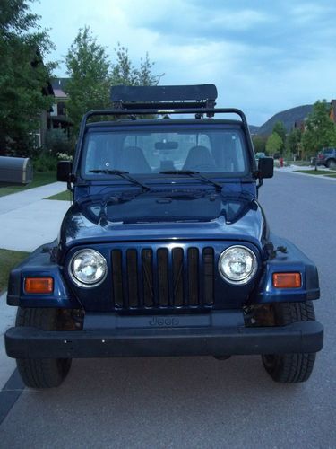 This 1997 Midnight Blue Jeep Wrangler has been used primarily as a weekend car in nice weather. I have only used the four wheel drive function on the car twice. This is the ultimate fun summer car and no expense has been spared in maintaining this vehicle. There are no leaks or dents. There are some very small scratches but are all very hard to see and don't show up in pictures.I have had a lot of fun with this Jeep but my wife wants a Porsche Convertible. I just installed an a BRAND NEW STEREO in the car which includes a CD player w/ iPod hookup, new Polk Audio speakers, and ALL NEW TIRES & WHEELS. The interior is in perfect condition and does not show any signs of wear. This car is ready for Summer and will not require maintenance for a long time.! Please look at my past ratings of cars that I have sold. Please contact me with ANY questions that you may have. RESERVE IS VERY LOW for a Wrangler with this low of miles.Happy Bidding.