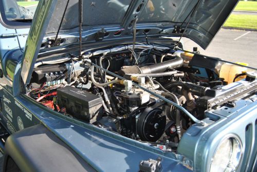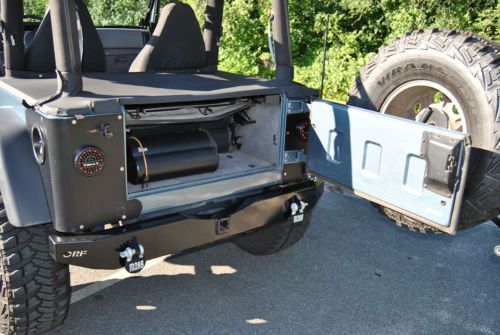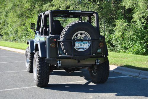 http://www.offroadonly.com/ and I tossed it on the Facebook page as well. This is a 1 owner Jeep, spent the last 11 years as the show Jeep and test mule for OffRoadOnly. This Jeep has had Mobil 1 engine oil since appx 5000 miles. Everything on the Jeep works, A/C, Heat, Etc. The Jeep is not perfect, there is some wear and tear. Most things are shown in the pictures, a list of these imperfections are as follows; Hail dent (dent's, qty 2) above the glass on the windshield One or two spots on the hood where the paint/bodywork cracked from hail, but wasn't damaged enough to warrant repair. Passenger side door has made contact with a rock near the top edge of the door. Passenger side rock rail has a couple of scars/dents from a rock (same that got the door above) The front fenders have both suffered some twists and tweaks from run ins with trees, there is some chipped paint and some areas that have been touched up with body color paint from these tweaks. Left front fender has a crack at dead center behind the flare, just barely noticeable above the flare. Driver seat, the left bolster has a crack in the vinyl and a spot of foam wear. It is covered in the picture by the Jeep seat covers. Center console has broken latch catch, cover does not lock. Top of windshield outside on passenger side has some scuffs on it. This Jeep runs and drives great. Not shown in pictures but included is a full TJ soft top and clear rear windows. It is a sail cloth factory top from later model TJ. The following is a list of parts that are installed and in operation on this Jeep. 1998 Tj sport 102k miles Factory half doors