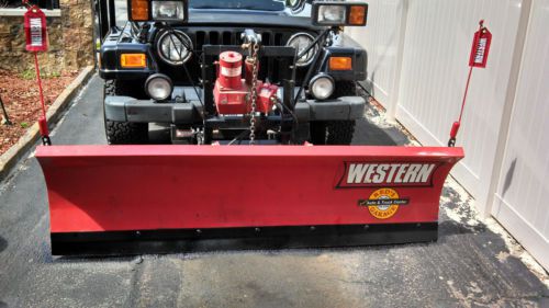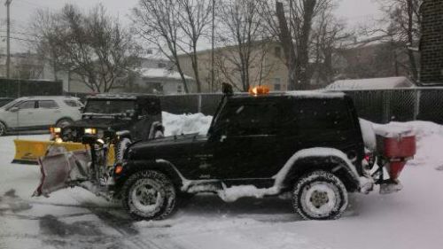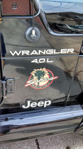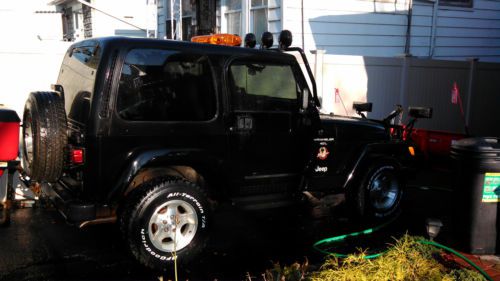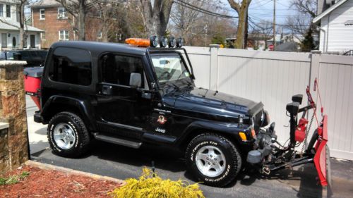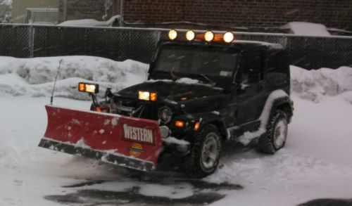 You are bidding on a Black 2000 Jeep Wrangler Sahara. This Jeep is in very good condition and has been well maintained. This Jeep was used in the winter for plowing. In the summer the plow, salter and top came off and was a great convertible to take to the beach. The odometer has 128,277 miles on it but the engine has been changed. The engine was changed at approx 123,000 miles with an engine from a 2002 Jeep Cherokee that had only 75,000 miles on it. So you are getting an engine that basically has 79,000 miles on it. The plow blade was completely changed this year. Also changed this year were the Battery, Starter and Alternator. There are also 4 brand new tires (less than 500 miles on them). There are two dents on the hood that you can see in the pictures provided. This Jeep comes with the following:
