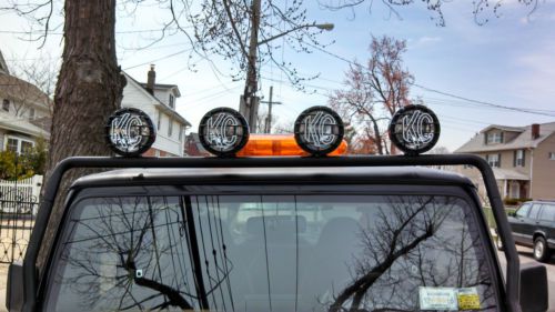 Hard Top Quadratec Soft Top with zip off rear and back windows. Western 6 and a half foot plow Western Tailgate Salt Spreader. Model 500 Handheld remote for plow 6 Speaker roll bar mounted Sound bar KC Highlights Light Bar Headlight and Taillight Covers Multi-Lock Shifter Lock Aurora Emergency Light Top Mounted Derale High Performance Electric Fan BF Goodrich All Terrain T/A Tires 30x9.5x15 Jeep Front Mats Fire Extinguisher-Roll Bar mounted |