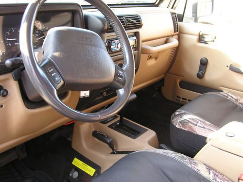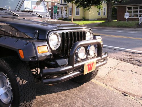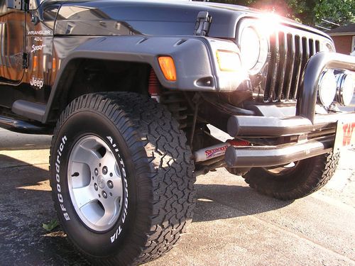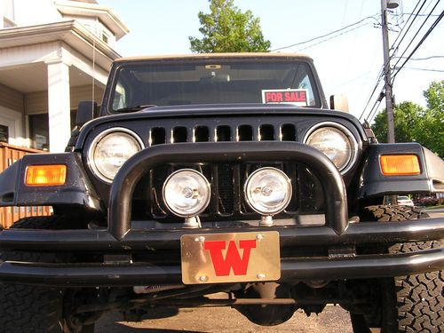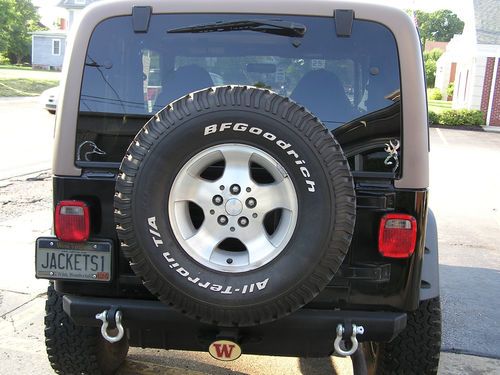 THANKS FOR LOOKING AT MY BLACK 2000 JEEP WRANGLER 2 DOOR LIFTED HARD TOP JEEP!!!!!! THIS JEEP HAS A 2 INCH ROUGH COUNTRY LIFT TAN HARD AND ORIGINAL SOFT TOP HARD DOORS WITH ROLL UP GLASS WINDOWS BFG ALL TERRAIN T/A TIRES 32/11.5 5 TIRES SONY HEAD UNIT K/C FOG LIGHTS CUSTOM FRONT AND REAR BUMPERS REAR TIRE CARRIER THIS IS ONE NICE JEEP THE PREVIOUS OWNER PULLED THIS UNIT BEHIND HIS MOTOR HOME SO DONT LET THE MILES SCARE YOU THIS UNIT IS NICER THAN MOST WITH 50000 MILES .......PAINT IS AWESOME NO ACCIDENT HISTORY BUYER RESPONSIBLE FOR PICK UP NO B.S.!!!! BID TO OWN DO NOT BID IF YOU CAN NOT PAY WIRE TRANSFER OR CASH IN HAND !!!!!!!!!! THIS IS A NO RESERVE AUCTION