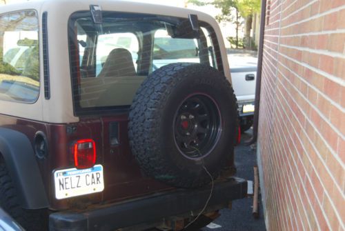 On Apr-07-14 at 07:55:09 PDT, seller added the following information: 2001 Jeep Wrangler Sport Automatic Transmisison 82,000 Miles Maroon and Tan Interiror Factory Hard Top Factory Hard Doors Exterior in fair condition 2" lift Newer 31" Dick Cepek Radial FCII Tires (Includes spare) Currently the vehicle is not drivable because it needs automatic transmission lines There is some rust on the frame AC does not blow cold Needs Inspection Additional items as part of this sale: Lange Hoist a top (Manual) Deluxe Heavy Duty Hard Top Storage Cart with Retainer Bar Tailgate Security Enclosure (uninstalled) Bikini Top (2) Trail Covers Full Cover For a full picture gallery of this vehicle, please visit here: http://www.certifiedgeek.net//2001jeepwrangler/ If you have any questions please free to contact us. Serious bidders only please |
