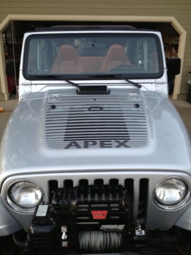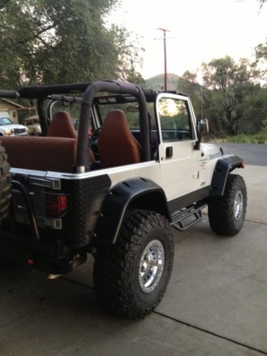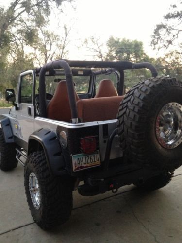 4" Terraflex Lift kit with 35" Mickey Thompson Baja claw tires 15x14.5 15's 95% tread Mickey Thompson 15" Wheels Same size spare tire 35" Strait six 5 Speed with Avenger Supercharger 4:88 gears Detroit true track lockers Aftermarket exhaust Smittybilt Bumpers and side steps with Warn Winch Power plant Dual force HP 9500# 6" Bushwacker fender flares Stereo sound bar and C/D player A/C and heater work excellent comes with Hard top Jeep Runs excellent and drives like a dream. This Jeep is a lot of fun to drive not just on the road but off also. Jeep is in California but willing to help ship anywhere. Any questions, Just ask. |