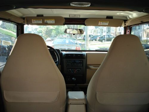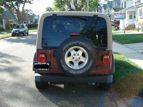 Up for sale is a 2002 Sienna Red Jeep Wrangler Sahara Edition with very low miles...36084...Engine just broken in!!!!!Original Owner!!!!The interior is Tan with upgraded sound system from Jeep! Full roll cage with speakers integrated in upper roll bars, cd player! This car is manual with original clutch, brakes, everything, serviced by Jeep only and all service records available! No accidents or any problems ever!!! This Jeep was meticiously maintained with oil being changed every 3k miles with Mobile 1 Synthetic, as well as all other fliuds!!! Tires have 90% tread left and rear full size tire is brand new, never used! Comes with both hard and soft tops for those summer days or winter months!!! Perfect for crusing down to the beach or around neighborhood and great for winter when its snowing out, just swtich on the 4WD and drive like the roads are dry! Great on gas... Also has a tow hitch to haul those jet skis, boat, motorcycle, or whatever you have! You wont find another Jeep in such great shape with low miles! For questions or to arrange a day to come check it out, call (646)301-5016 and if no one answers we will get back to you right away!!!! Many more pictures also available!!! All Service records available!