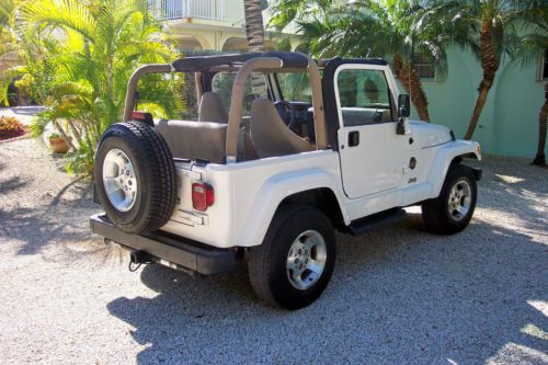 OFFERED HERE IS A 2002 JEEP WRANGLER SAHARA EDITION 5 SPEED MANUAL / WELL MAINTAINED / JEEP RUNS AND DRIVES GREAT 103,000 MILES / CLEAN CARFAX / CLEAR TITLE IN HAND LOCATED IN KEY LARGO FLORIDA AND CAN BE SEEN AT THE MEDIAN STORAGE LOT MM 98.7 KEY LARGO NEW BIKINI TOP / SOFT TOP FRAME IS INCLUDED BUT IT NEEDS A NEW TOP PLEASE CONTACT ME IF YOU HAVE ANY QUESTIONS *************************************** CHECK OUT MY 100% POSITIVE FEEDBACK. THAT WAS NOT BUILT BY ACCIDENT . . . BUY WITH CONFIDENCE I STRIVE TO ENSURE THAT EVERY ONE OF MY TRANSACTIONS HAS TWO COMPLETELY SATISFIED PARTICIPANTS . . . ME AND YOU! THANKS FOR YOUR INTEREST IN MY LISTING!! |