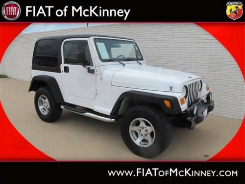 FIAT of McKinney is offering this clean and reliable 2002JeepWranglerSportThis Wrangler won't last long at $3,201 below NADA Retail... Special Web Pricing on this outstanding SUV. 4 Wheel Drive, never get stuck again.. Less than 78k Miles. All Around gem!! This Wrangler won't last long at $3,201 below NADA Retail... New Arrival! Where are you going to stumble upon a nicer Vehicle at this price? Nowhere, because we've already looked to make sure.. Safety equipment includes: Passenger Airbag - Cancellable, Front fog/driving lights...It has tons of features such as: Convertible roof - Manual, Tilt steering wheel, 190 horsepower, 4 liter inline 6 cylinder engine, 2 Doors.... Please contact our Pre-Owned Sales Department at 888-871-9401. Large selection of new and preowned vehicles. We have access to over 2000 pre-owned vehicles so if we do not have it, we can find it for you. We also deliver to most places in Texas and Oklahoma...call us for more details!