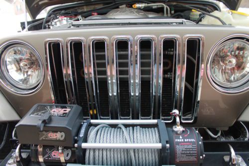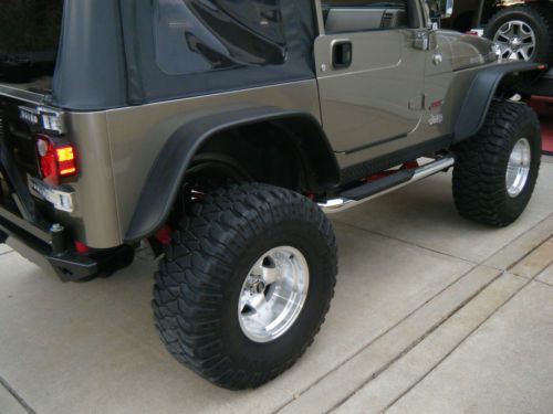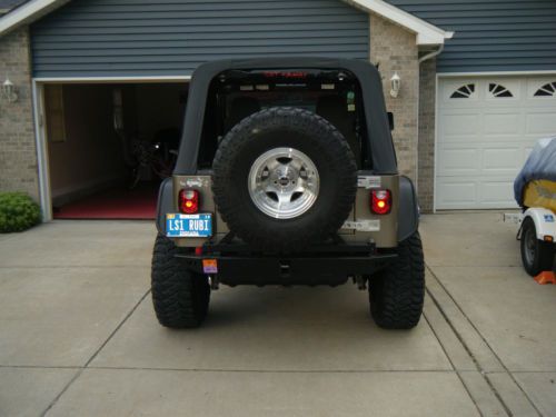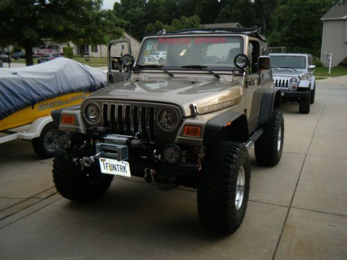 For sale is my 2003 Jeep Rubicon That I had custom built. They say "a Jeep can go anywhere but not too fast" Here is your exception to that rule. I purchased this Arizona jeep and installed a GM LS-3 5.3 V8 with 4L-60E transmission package from a rear ended silverado with 46 K on the clock. It came with all necessary components from the donor truck including the drive by wire throttle, clean wiring harness, ecm Etc. This is the aluminum block version and weighs 100 pounds less than the lethargic 6, and is rated at around 340 hp with free flow exhaust and intake. The body/odometer digital dash reads 107,000 but is actually about 53k. The motor is stock. ALL driveline components were removed and rebuilt of refurbished with new fluids and seals. Rear axles were replaced with USA Alloy hardened axles as a precaution with factory 4:10's, the rest of the driveline is stock Rubicon and in excellent working order. The lockers will work in hi or low lock. The chassis was coated with bullet proof pore 15 coating and the interior floor pan is coated with Rhino line. The Jeep sits on a 4" long arm lift, 35" tires and a 1" body lift. The top is a new Bestop Sunrider, 1000 watt stereo, and tons more bling and goodies. All of the work was done by a professional shop and there are no issues with the vehicle whatsoever. Please ask questions and come and see it for yourself...This is a bad boy jeep, not for the timid or shy. It has absolutely no rust ANYWHERE and has not seen mud, just a little sand. I have all paperwork for parts and professional installation. Carfax is clean, and I am 52 years old-the truck has never been abused, just my little Jeep hotrod. This item is listed locally and I reserve the right to end the auction early. May consider trade for cabin cruiser boat. TXT questions to 219-617-3993. The last pic. is Ruby's replacement. I have clean title in hand. Make a non-insulting offer and she may be yours!