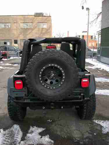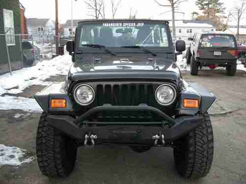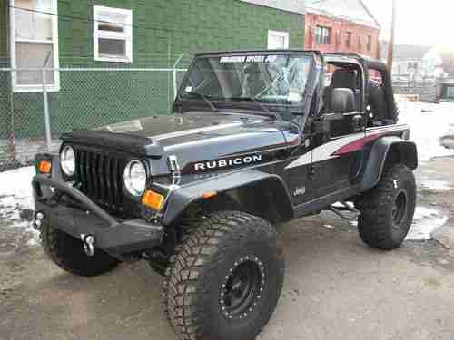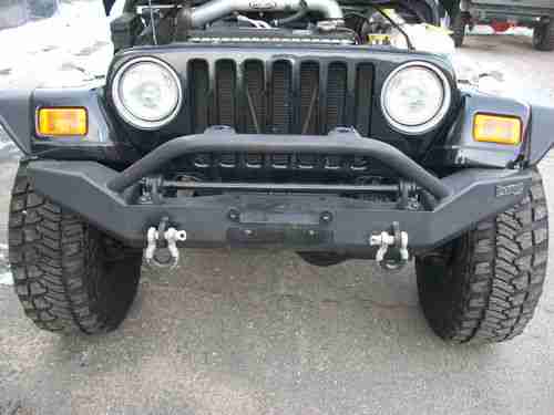 Up for sale is a heavily modified 2004 Jeep Wrangler Rubicon. This Jeep belongs to my Uncle, but since it was built at our 4WD shop, I am listing it for him. He was driving it after a big snow storm and the right front tire got sucked into a snow bank. It spun him and flipped it onto the drivers side. It slid down the road on the drivers side, hit a snow bank and stopped. It is a meticulously maintained Jeep. It now comes with a Connecticut salvage title. The hard top shattered and the roll bar took the brunt of the force. The roll bar, windshield frame and tub are damaged. The drive-train, frame and suspension are fine. The Jeep starts, runs and drives just as it did. The grill, P.S. fender, P.S. hard door and tail gate are good. The drivers door is slightly bent at the top and the glass blew out. The air bags did not deploy. It has the 4.0 engine with an automatic trans, Rock track 241 t-case and Dana 44 axles front and rear. All standard Rubicon hardware. The frame is clean and rust free. We fully removed the lower control arm brackets, smoothed frame, primed and painted frame before installing the suspension system. Below is a list of the modifications that we installed.