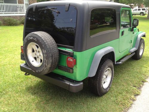 I am selling a 2004 Jeep wrangler unlimited, also known as LJ. The LJ was a limited production jeep from 2004-2006, and has a 10" longer wheelbase than the regular TJ wrangler. The longer wheelbase allows for a smoother ride over the regular TJ. This jeep is the lime green color, you either love it or hate it.... Not much else to say, other than when you put a lift, big tires and black wheels on this jeep, it REALLY looks sharp.
