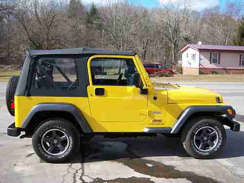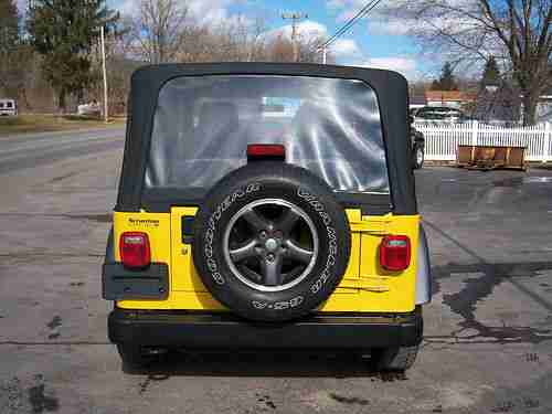 This wrangler runs and drives great . The engine is smooth on a idle and runs strong no issues. Transmission is automatic shifts thru all the gears no issues. The Exterior Paint- has a nice shine, some small chips in grill the hindges have normal wear and corrosion. The passanger side front fender has a small spot starting see pics.The interior is clean in nice shape carpets also in good shape see pics. This is not a new car do not expect show room condition. Overall this is in nice shape runs up the road great.. Spent its life in Mass. and Pa. - has a Pa. title.. Nice Jeep see Pics