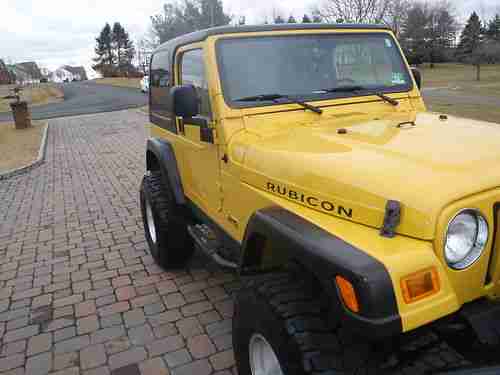 2006 Jeep Wrangler Rubicon - Yellow with Dark Grey interior - 6 Speed Manual Transmission and only 14,070 original miles. Stereo is 6 disk changer and Sirius (factory installed). This Jeep has TWO sets of doors -original and Rugged Ridge Tube Doors (Model TJ 97-06 brand new in sealed box) and THREE tops - Hard Top (with storage garage lift and comealong included), Soft Convertable Top with plastic curtains (storage roll pack is included and top and plastic curtains are in good shape) and Bikini Top with mounting bracket (Bestop brand new in sealed box) - actually four tops if you include the full cover! This fall we put the hard top on for first time because we thought we would use it this winter (we didn't). The rear tailgate also has the added tool kit I bought this Jeep from a good friend so I know EVERY mile that it was driven. I bought it with 12,600 miles and right before I bought it it had its brakes and oil changed. I towed a 13' Boston Whaler down to the shore four times last year and that is the extent of its towing career. You can tell by looking at it that it has never been off road. Somewhere between 3 and 4,000 miles, the Jeep was taken to F/X Automotive in White House Station, NJ where it had the following installed: 4" suspension lift, 1" body lift in front, 2" body lift in the rear (to offset spare wheel weight), Five (5) Ultra Wheels - Pro Comp X Terrain 35x12 50R15 LT M+S Tires, Heavy-duty stabilizing bar, Back Country Tubular Step Bars, Back Country Front and Rear Bumper and alarm with remote. The bumpers are showing some signs of rust on the ends (as they always do - see picture) and I was going to have them re-painted but simply didnt have the time). I am not a professional so it is hard for me to put a condition on the car, but it shows as good as new interior and exterior-wise and runs like new. The pictures do this Jeep no justice at all - it is absolutely the head-turner in town and must be seen in person to be appreciated. I just spent about $600 for the Bikini Top and Tube Doors, $600 to have the four wheels polished and $500 to change the spring boots and had yellow shock boots installed. This $500 also included having the undercoating re-done for rust proofing (it was looking a little old and now looks great under there). I believe that the warranty has now expired so the vehicle is being offered for sale as-is. It is also for sale locally and cannot promise that it will be available for the duration of this ad. Will consider a trade for 2010+ Mercedes C 300, Audi A-4 or BMW 328 Please call with any questions - Joe 215-896-4655.