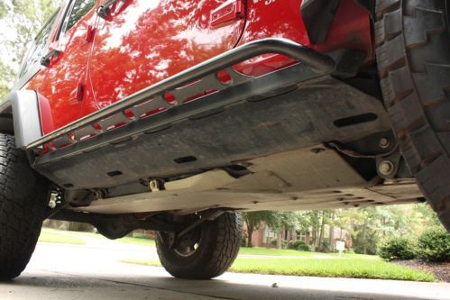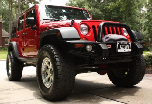 I am the original owner of this vehicle, purchased new in 2007. The vehicle is loaded with options from the factory, plus many more custom additions that total more than $13,000 in part cost. The vehicle drives great and looks great…I'm still amazed at how many comments I get while out in public! If you have any questions or would like to arrange a test drive please give me a call (713-409-0054) or send me an email (jasongallia@yahoo.com). Vehicle zip is 77381. My listed price is $26,500, and includes the original Rubicon wheels with 37” mud terrains, iPad mount, and all offroad accessories shown in the pictures. Please check out my consolidated listing with 49 pictures and detailed factory build list: Below are the custom additions. The last page of the link above lists all of the standard options. Suspension ($2,476) Polyperformance Synergy Suspension Synergy 4 inch progressive coil springs Synergy heavy duty tie rod ends Synergy high steer drag link Synergy adjustable front track bar Synergy front and rear track bar brackets Dynatrac ProSteer upper and lower ball joints Extended sway bar links (works with 1-touch Rubicon electronic disconnect) Teraflex VSS shocks (original Rubicon shocks and springs included) Bilstein steering stabilizer AEV geometry correction front control arm drop brackets Body ($6,154) TNT Customs 3/8" steel belly pan system with custom gold zinc treatment TNT Customs boat side rocker panels (black powder coated) ARB front deluxe steel bumper with winch mount and flip up license bracket Bulldog 10,000lb integrated winch ARB rear steel bumper HiLift tailgate mount HiLift jack (Red HL485) with handle keeper Smittybilt oversize tire carrier Riddler front and rear heavy duty differential covers Rear tailgate damper (new in box, not installed) Engine ($808) XDi cold air intake system (have original air box) High tuck exhaust with relocated Flowmaster stainless muffler Optima red top spiral cell battery Interior ($680) Carolina Metal Masters billet grab bar with ball mount, black anodized The Joy Factory carbon fiber ipad mast (iPad case included) Front and rear grab handles AEV jack base and miscellaneous recovery gear MOPAR crawler all-weather mud mats MOPAR freedom top padded storage case Wheels / Tires / Brakes ($3,180) Nitto Terra Grappler LT355/65R18 (37" x 14" wide) tires (used for 13k miles) Black Rhino Imperial 18x9 alloy wheels (69877) Front and rear drilled and slotted discs with ceramic brake pads (used for 15k miles) Note: The above are currently installed on the vehicle. Also included are the original Rubicon wheels with 37" BFG Mud Terrains for offroad use (pictures of BFG's included below) |