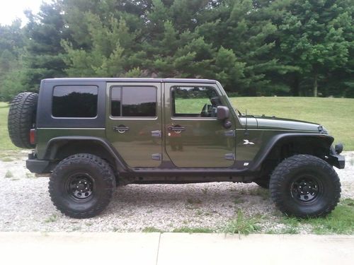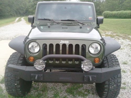 This is a used 2007 Jeep Wrangler 4 Door. I purchased this vehicle from a dealer in Rochester, NY with all modifications already completed. It has a 4 inch lift kit (dont know the brand) with 5 Goodyear Wrangler MT/R's with kevlar 35in tires, Maganaflow Exhaust, Steel Front Bumper with bull bar, Steel Rear Bumper with Swing Arm, Riddler Front and Rear Differential Covers, Armor over the gas tank and t-case, Steel Rock Rails from PureJeep, Bushwacker Front and Rear Fender Flares, Hella offroad lights, AFE CAI, 5 American Racing 15in wheels, and Freedom Top Hardtop. The interior flooring has all been Linex'd, and both bumpers and rock rails have been covered with bed armor with kevlar. The interior is in good shape, no rips or stains on the seats, the plastic does have some scratches to it. The exterior is in really good condition, only one small chip under the drivers side mirror, and the paint shines up nicely. The Freedom Top seals up as it should and only has a few small scrapes on it.