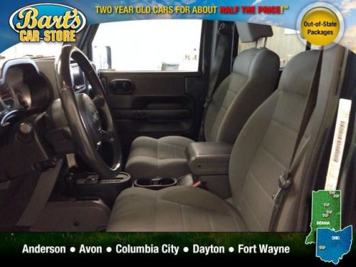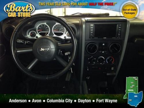 Thank you for your interest in one of Bart's Car Store Inc - Columbia City's online offerings. Please continue for more information regarding this 2007 Jeep Wrangler Unlimited Sahara with 87,712 miles. Gone are the days of SUVs being the size of a tank and handling like one. This Jeep Wrangler is a perfect example of how SUVs have evolved into vehicles that are as refined as they are rugged. This 4WD-equipped Jeep will handle beautifully on any terrain and in any weather condition your may find yourself in. The benefits of driving a 4 wheel drive vehicle, such as this Wrangler Unlimited Sahara, include superior acceleration, improved steering, and increased traction and stability. The Wrangler Unlimited Sahara is well maintained and has just 87,712 miles. This low amount of miles makes this vehicle incomparable to the competition. More information about the 2007 Jeep Wrangler: The new redesigned 2007 Jeep Wrangler improves the name's long-established reputation for exceptional off-road ability, and also gets a surprisingly broad array of modern conveniences, along with improved interior comfort and safety features. This all comes without a major jump in sticker price versus its predecessor. The Wrangler may be worth its price for its rugged looks alone, because there's nothing else like it. Interesting features of this model are wide range of configurations., go-anywhere off-road ability, and Rugged looks Ask about our Out-of-State Package Specials History Reports Available at http://www.bartscarstore.com Go to http://www.bartscarstore.com Transfer this vehicle to any of our 5 locations "Use your SMARTS and buy at BART'S"