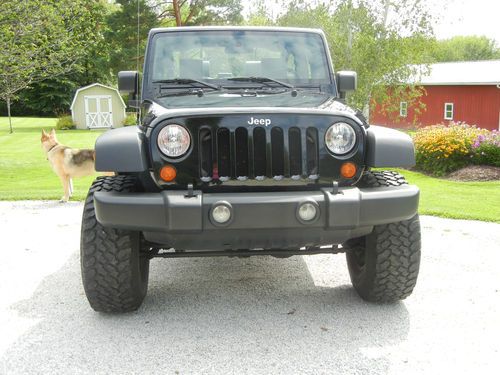 6-cyl 3.8 Liter engine, 4 wheel drive, 4” Pro Comp Suspension Lift, 5 Pro Comp M/T Tires (315/75/16) on 5 Pro Comp Extreme Alloy Rims, air conditioning, cruise control, bumper mounted off road lights, factory AM/FM stereo MP3 CD player /IPod plug in, full padded roll bar with speaker bar, privacy glass, traction control, dual front air bags, rear seat and an additional bikini top.