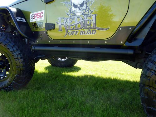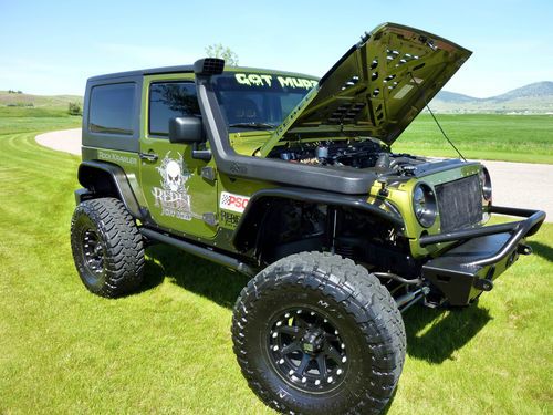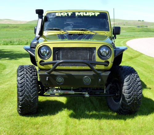 We can clearly make out the Wrangler-shaped passenger compartment up top, but as for the other bits and pieces that make up this rather amazing machine, your guess is as good as ours. At the very least, it seems to us that the car's wheelbase has been given a significant stretch, and the grille may have come from an International LoneStar Harley-Davidson Special Edition semi truck.