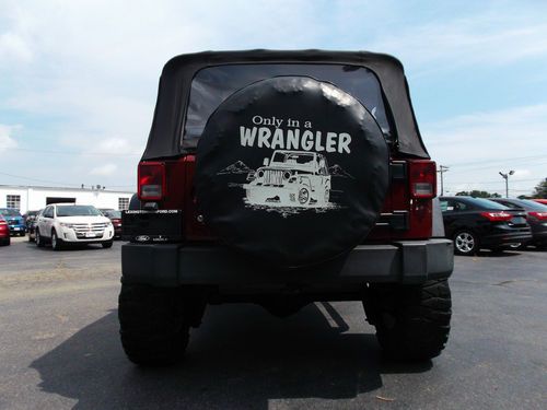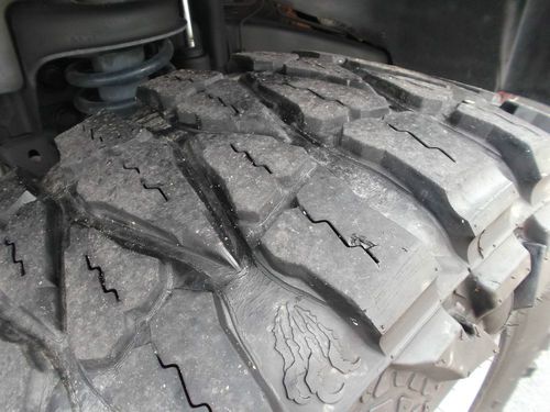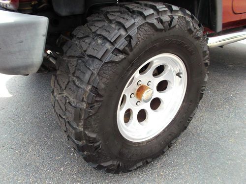 This is one fun machine. It is a one owner certified by Carfax with no accident/ damage reported (other than that on the rear bumper as stated above). The engine is stong and the transmission shifts fine. AC blow cold. The 'M/T' centerline rims are in great shape for being out for 6 years. The Nitto Mud Grappler tires are maybe 30-40 % worn but as you can see, still have good tread. They have a 41/2 out of a 5 star rating by TireBuyer.com. They do make the normal ride of a Jeep a little different when driven on pavement, but that is expected if you know off roading driving. The actual tire size is 35X12.50 R17 LT's. The spare looks new and the cover is good but part of the elastic cord has come loose but still hold on the tire fine. The convertable top has no rips or tears