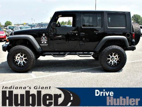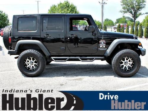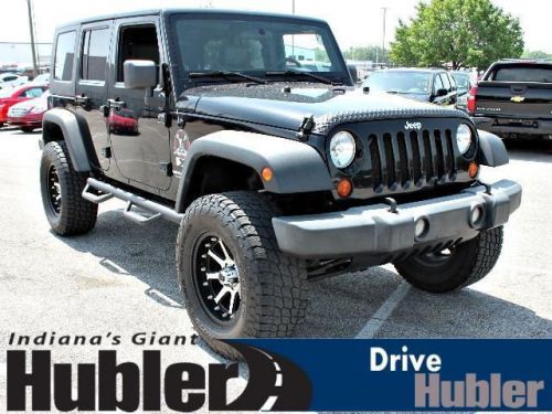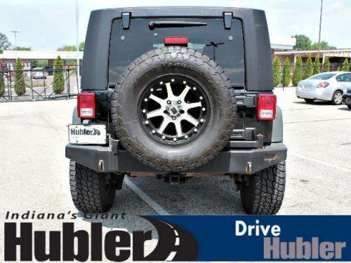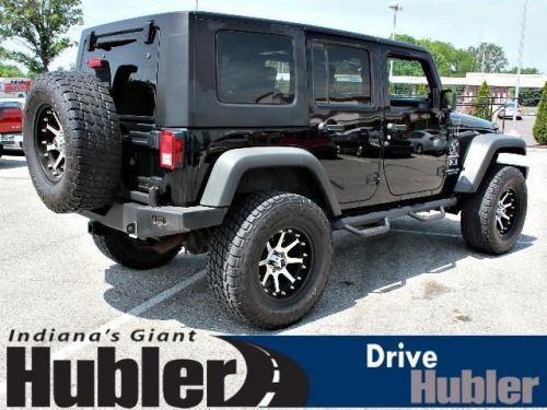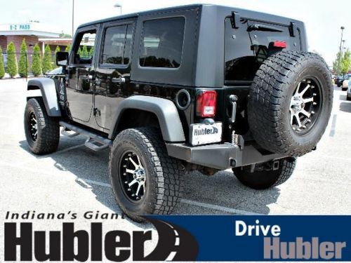 Clean. Black with Black (Top) exterior and Dark/Medium Slate Gray interior, Unlimited X trim. CD Player, iPod/MP3 Input, 4x4, One Year No Charge Oil Changes. 5 Star Driver Front Crash Rating. CLICK NOW!======DRIVE THIS WRANGLER WITH CONFIDENCE: 5 Star Driver Front Crash Rating. 5 Star Passenger Front Crash Rating. ======KEY FEATURES ON THIS WRANGLER INCLUDE: iPod/MP3 Input, CD Player MP3 Player, 4x4, Rollover Protection System, Electronic Stability Control, Bucket Seats. Unlimited X with Black with Black (Top) exterior and Dark/Medium Slate Gray interior features a V6 Cylinder Engine with 202 HP at 5000 RPM*. One Year No Charge Oil Changes. ======JEEP WRANGLER: AUTHENTIC TO THE CORE: The Jeep Wrangler 4x4 offers the ultimate in capability without compromise. Wrangler has room for five and provides all the versatility and cargo capacity you need for your next adventure. Fun and freedom go hand in hand in the Jeep Wrangler - the only 4x4 convertible with a unique, open-air design that intensifies the off-road outdoor experience. (www.jeep.com) ======WHO WE ARE: After more than 50 years in business, The Hubler Auto Group, through the power of ten central Indiana locations, has literally sold hundreds of thousands of vehicles and is one of the oldest and most prolific auto dealers in the State employing 550 people. The Hubler Auto Group can claim the title for selling more G.M. vehicles in the State of Indiana than any other dealer or dealer group, and has earned the right to brag of having the largest and most loyal customer Pricing analysis performed on 5/26/2014. Horsepower calculations based on trim engine configuration. Please confirm the accuracy of the included equipment by calling us prior to purchase. Hubler Nissan is committed to providing the finest automotive ownership experience through superior customer service. Let us make you a "Customer for life". We have 99% Guaranteed Credit Approval! For more details or to schedule an appointment, call us at 888-566-9218.