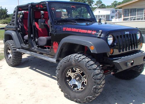 Zombie Outbreak Response Unit jeep. I did all the work to this Jeep including lift, tires, wheels, bumpers, top accessories, neoprene seat covers, front and rear 2' hitch, trans cooler, and much more. I only use Royal Purple Oil in this also most of the milage are highway miles. I'm selling because I bought a work car and I don't need they monthly payment when I can buy a late model jeep outright.