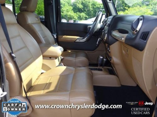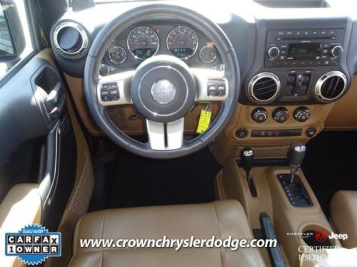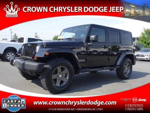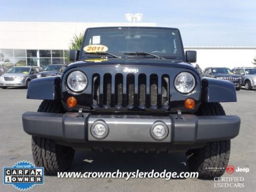 This 2011 Jeep Wrangler Unlimited Mojave is offered to you for sale by Crown Chrysler Dodge Greensboro. Drive off the lot with complete peace of mind, knowing that this Wrangler Unlimited Mojave is covered by the CARFAX BuyBack Guarantee. At Crown Chrysler Dodge Greensboro, we want you to know that you can be confident in your purchase with us. The Jeep Wrangler Unlimited is the benchmark all other SUVs strive to meet. With exceptional power, towing and handling, this SUV can handle anything thrown at it. Taking the road less traveled has never been more fun than with this 4WD Wrangler Unlimited Mojave. With improved performance, mileage and acceleration, this 2011 4WD Wrangler Unlimited Mojave is king of the off-road. Gently driven doesn't even begin to explain how lovingly cared for this ultra-low mileage vehicle has been. More information about the 2011 Jeep Wrangler Unlimited: With prices starting at a little over $20,000 and standard 4-wheel drive, the classic Wrangler is one of the best SUVs for the money in its class. The 6-speed manual transmission helps the Wrangler achieve a not-too-shabby 15 mpg city and 19 mpg highway rating. Inside, the multi-function steering wheel and 6-speaker sound system are standard across the board. With a rugged rock-crawler like this, it's important to note for new shoppers that even at its least expensive, the Wrangler's doors are still all metal with roll-up windows ? and they can still be taken off completely. Interesting features of this model are Iconic exterior remains, new technology in a simple SUV, and interior gets needed upgrade Please print this add and ask for our Internet Sales Dept. to receive your special Internet discount of $250. Price plus tax, tag, and dealer administrative fees on approved credit only. While every effort has been made to ensure display of accurate data, this listing may not reflect all accurate vehicle items. All inventory listed is subject to prior sale. Photo shown may be an example only.