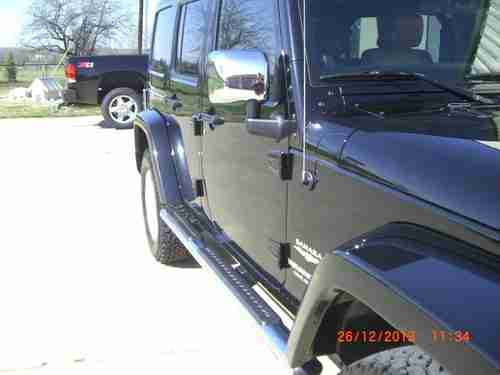 This 2012 Jeep is in immaculate shape. Never been off-road, smoked in, no animals, no rips or tears, and always garaged. Everything on it works. It is as good as new, just cheaper. It has chrome front grill,mirror covers, side bars, and tail light covers added. This is as loaded as you can get. it has all the perks from leather, heated seats to navigation, to the new 3.6L V6 24V VVT engine and the 5- speed auto W5A580 transmission. You WILL NOT find a nicer one on e-bay for the price. The only reason getting rid of it is because ordered new jeep from AEV. Good luck in your search, and thanks for looking. any questions, I can be reached at 214-728-3063. Thanks.