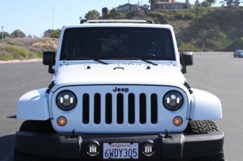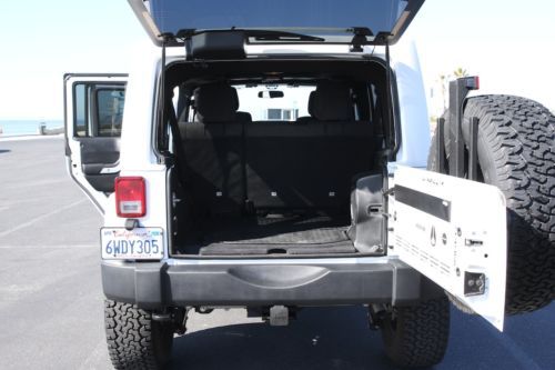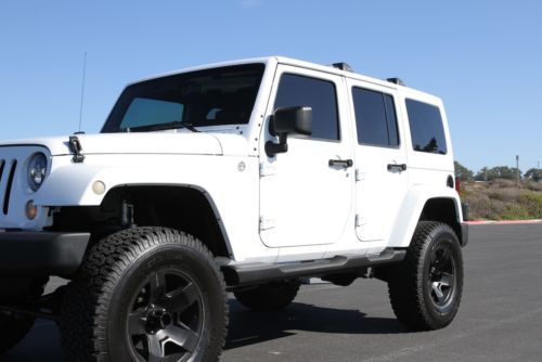 I am selling my super clean 2012 Jeep Wrangler Unlimited Sahara. She only has 17,800 miles, has never been off-road, although completely designed to do so. It is in excellent condition, no accidents, no dents, I have truly babied this Jeep. I have taken a new job, that requires a lot of driving, unfortunately I have to let her go and get a vehicle that better suits my needs. You will not find another one out there that is as clean as this one, as well as the modification that have been done. I have spent close to $10,000 in mods on this baby. I will also include the cart/cover(s) that is used to take the hardtop off of the Jeep, which allows for easy storage. ORW in San Diego did the lift and suspension for me in March of this year. It drives like a dream. Also, 6 Speed manual. The new Penstar motor that is in this thing coupled with the manual transmission, so much quicker than the automatic...I guarantee that! As you can see from the photos, the headlights and fog lights that I put in the Jeep are amazing. Similar to what you see on the newer European cars, these babies light up the night. I change the oil often and run Mobil 1 Synthetic. I have "blacked out" the emblems, antenna to give it that true black/white effect. The factory warranty is still in place, with just about 18,000 miles left on it. I have all receipts. A true Jeep owner can appreciate what is being offered here. . ..