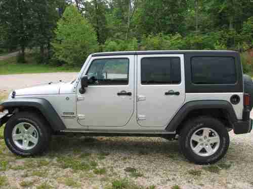 Here is our 2012 Jeep Wrangler Unlimited Sport 4x4. Only 4,752 miles. Jeep is truelly like brand new inside and out. This Jeep is equipped with the 3.6 Liter VVT V-6 engine with Automatic Transmission. Jeep is silver outside with black interior. Features the 3 piece freedom hard top with rear wiper and defrost. Features of this Jeep include: