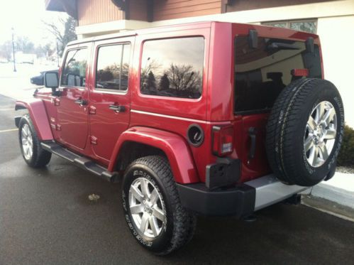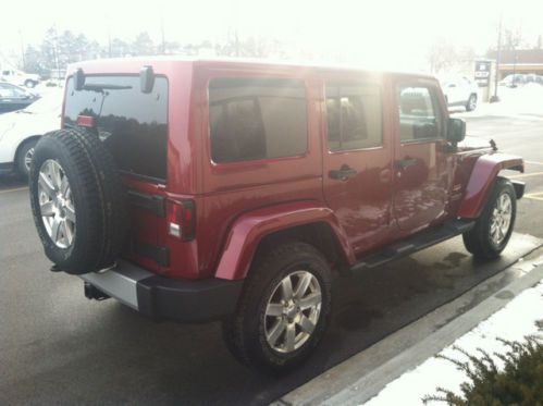Jeep Wrangler Unlimited Sahara, 4D Sport Utility, 3.6L V6 24V VVT, 5-Speed Automatic, 4WD, Deep Cherry Red Crystal Pearlcoat, and w/Cloth Bucket Seats. Matching painted Hard Top. Vehicle is my daily driver and currently has 37,8xx miles. This vehicle has the 7-Year/100,000-Mile Powertrain Limited Warranty Additional details: 18 X 7.5 POLISHED SATIN CARBON WHEELS,3.21 REAR AXLE RATIO,4-WHEEL DISC BRAKES,7 SPEAKERS,ABS BRAKES,ALLOY WHEELS,AM/FM RADIO: SIRIUS,AUDIO JACK INPUT FOR MOBILE DEVICES,AUTO-DIMMING REAR-VIEW MIRROR,BRAKE ASSIST,CD PLAYER,CLOTH BUCKET SEATS,COMPASS,DRIVER DOOR BIN,DRIVER VANITY MIRROR,DUAL FRONT IMPACT AIRBAGS,ELECTRONIC STABILITY CONTROL,FRONT ANTI-ROLL BAR,FRONT BEVERAGE HOLDERS,FRONT CENTER ARMREST W/STORAGE,FRONT FOG LIGHTS,FRONT READING LIGHTS,FULLY AUTOMATIC HEADLIGHTS,HEATED DOOR MIRRORS, |