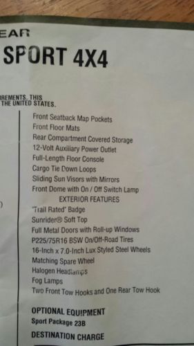 2014 Jeep Wrangler Sport 4x4 Brand new 2014 Jeep just off the lot. Hasn't been on the road 10 times. Driven from New York to Central Pennsylvania to a dealership which is most of it's miles. As soon as it got here had it taken to Krawl Works. Modifications from Krawl works: 3in. Zone Lift 17in. PRO COMP rims 285 75 17 Maxxis Big Horn Tires. 5 of them AEV Speed Tune Tuner for tires and lift calibration ARP front bumper 8,000 Pound XRC Winch ARP Rocker Panels All installed less than a week ago. Everything else is stock. All warranties still on. Brand New Dream Jeep for somebody. Priced to sell. Any questions call me at 814-470-3485. Thanks |