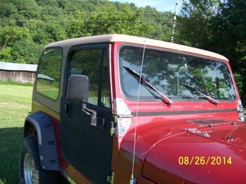 | 1992 Jeep Wrangler. 4.0 liter 5 speed.  This jeep has been well maintained and taken care of.  In the last 2 years it has been painted by Seagraves Body shop, new rancho shocks, new bushwhacker 6" fender flares, complete chrome kit, bumpers, door hinges, grill and other latches, Reese hitch, 2010 interior from a donor Jeep.  This jeep has a hard top which is a $1000.00 upgrade with rear window defogger and rear wiper. Comes with 2 sets of doors. One set of steel half doors painted body color in perfect condition and one set of Full steel doors with roll up windows as shown in the photo's. The full doors work and not rusted out but needs work.  They roll up and down but someone cut holes for speakers in them and they need door panels. This jeep runs well and has never been off road. No rust on frame. 172xxx miles,  Does not smoke rattle or make strange noises. 4 x 4 is great as well, very smooth in and out of 4 x 4. Winter is coming soon. I have owned this jeep for 3 years and have never had any problems. I have a small loan on this Jeep with the bank holding the title.  Pickup only with cash in hand.  We will go to bank together and get your title. Please feel free to ask me any questions.  I have a very reasonable reserve on this Jeep |