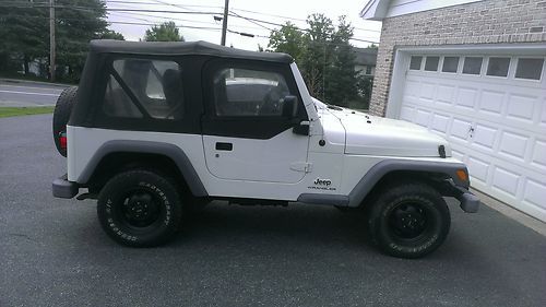Wrangler sport 4x4 manual transmission.With brand new inspection.Two owner vehicle,i bought it from my buddy who bought it new.Complete rear new brakes.Unmolested suspension,never lifted.4 cylinder engine with cold air intake.I have the factory intake in case you want to switch back.A/C super cold,145k miles.New SmittyBuilt neoprene seatcovers from Quadratec in case you get caught in the rain with your top off.Everything in working order,no rust on body.Good top,no tears in canvas material. Vehicle is being sold as is with no waranty.