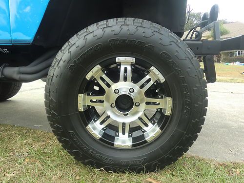 Aluminum 17"wheels with 295-70-17 Nitro Terra Grappler tires. 4 inch Lift. Bimini Top, Custom Jack and Mount. Has Updated Guages On Dash. Difficult To Find Factory Side Steps In Great Condition. Has A Working CB Radio and Antena. This Jeep Turns Heads Everywhere She Goes .