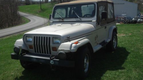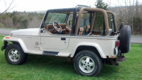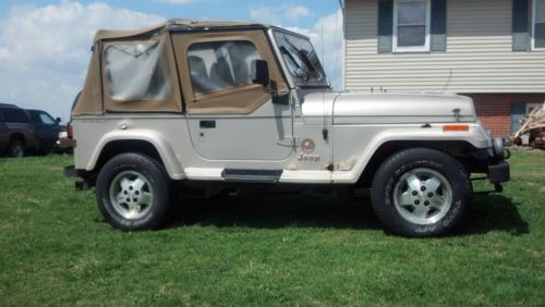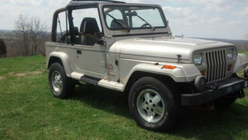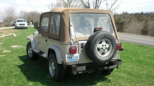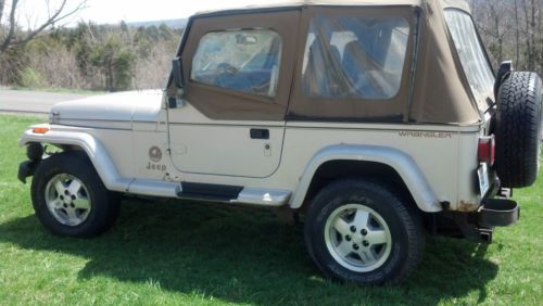 I HAVE A PRETTY NICE 1995 JEEP WRANGLER SAHARA EDITION. THIS JEEP RUNS STRONG BUT HAS HIGH MILES. THE MILEAGE SAYS 282000 BUT I THINK IT IS WRONG IT RUNS TO STRONG AND IS IN TO GOOD OF CONDITION TO HAVE THAT MANY MILES ON IT. I WOULD TRUST IT TO DRIVE IT ANYWHERE. IT HAS A 4.0 LITER H.O. MOTOR STRAIGHT SIX. THE TRANNY IS A 5-SPEED AND THE CLUTCH IS IN GOOD CONDITION. THE 4X4 WORK GOOD WITH NO PROBLEMS. THE TIRES ARE GOOD BUT NOT GREAT AND IT HAS A NEW SPARE. THE TOP IS ALL THERE BUT I WOULD REPLACE IT THE ZIPPERS ARE STARTING TO BREAK. THE BODY HAS A FEW CANCER SPOTS. OVER ALL THIS JEEP IS PRETTY SOUND AND HAS NOT BEEN ABUSED. IT HAS A NEW WATER PUMP, ALTENATOR, AND STARTER. THE INTERIOR IS ALL GOOD EXCEPT THE DRIVERS SEAT IT IS STARTING TO FRAY. ALL THE GAUGES WORK. THIS JEEP IS SOLD AS IS WHERE IS NO IMPLIED WARRENTIES OR REFUNDS. IF YOU HAVE ANY QUESTIONS PLEASE ASK BEFORE BIDDING. CALL MIKE AT 859-466-5604 |