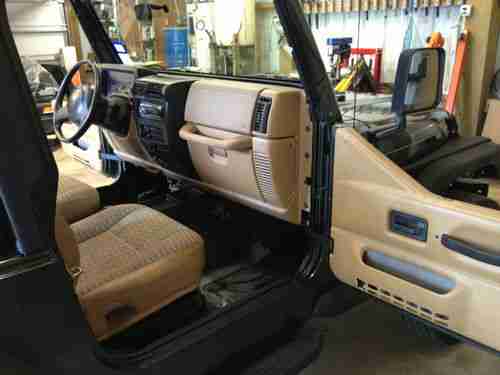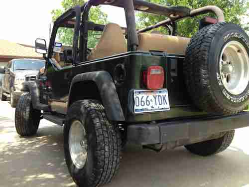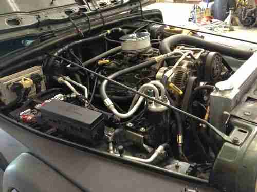 It's a 97 jeep wrangler tj that started life as a 4 cylinder as I was unhappy with it's power I stepped it up to about 400 hp with a HEMI V8 out of an 03 dodge ram with 68k miles on it. ( paperwork verified) automatic transmission , cold a/c, hemi conversion was very expensive, it works with all the factory jeep gauges, conversion uses all Mopar parts, runs and drives perfectly and it actually gets 17-18 mpg on freeway... Has a 2" lift, brand new brakes and sway bar links installed yesterday, new steering stabilizer. I just changed all the fluids... Both rear ends, transfer case, transmission, and engine oil.. It's ready to go anywhere. I also had the emissions state inspection done this weekend( yes it passes emissions ) the vinyl top needs replaced pretty soon but I do have it all complete.. The body is in great shape! No rust and maybe a little ding here or there but nothing noticeable.. It's dark green in color. Tan interior. I also installed a quick steer gear box so it drives much better than a normal tj. All aluminum radiator, I had an alignment done at Firestone when I did the inspection this weekend as well..