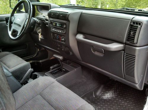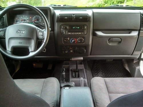 I am the second owner of this beautiful Jeep. It has been expertly cared for. You won't find a nicer TJ anywhere! This Jeep is in near mint condition inside and out. It is 100% original from the carpet to the fog lights (pretty rare with Jeeps these days as most have been modified, drilled, lifted, abused, you name it). If you wish you could go back in time and pick up a brand new TJ from the showroom floor, this is absolultely the next best thing and the perfect Jeep for you. The TJ's are the last of the REAL Jeeps! Please look over all photos, read the terms of sale, and ask any questions prior to bidding.