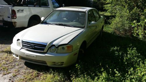 2004 Kia optima with 2.4L 4 cylinder engine. has automatic transmission. Cold air, power windows, power locks, power drivers seat, working sunroof, power mirrors, cd player, has 111,300 miles on it with clean title. has decent tires on it with more than 50% tread left. Runs great and drives great. clean interior. any more questions please feel free to ask. more pictures to come