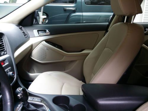 The interior is flawless, perfect condition, no stains, no smells, cleaned regularly. Beige Full leather interior with front and rear heated and A/C seats. Heated steering wheel, dual power seats, UVO Telematics system, Steering wheel controls, full panorama sunroof, CD and Sirius XM ready radio. The exterior is in very good condition as well. Full premium custom black wheels, custom black grille, custom black Kia K5 vehicle tags, tinted windows. Car has a few minor/micro-scratches and these have been factored into the price and discounted. The car will also be fully detailed when customer comes to pick up the car. I am the original owner of this vehicle and have been the only one who has driven it. The car came with an original 10 year, 100,000 mile warranty, of which 8 years, 76,200 miles are left on that warranty. The car has never missed a tuneup or oil change and just had a full service 500 miles ago. All new liquids, filters and a full cleaning. I AM SELLING THIS CAR WAY BELOW MARKET VALUE. I NEED THE MONEY FOR A DOWN PAYMENT ON A NEW HOME. Features & Options