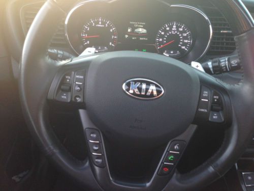 Like NEW very nice all OPTIONS 2013 Kia Optima with Bumper to Bumper up to 104000 miles warranty with dent protection and upgraded LED interior lights and plate lights. New ones cost 36k without warranty. Save thousands and buy this awesome car! Car has around 36000 miles and has every option available. This car even has heated back seats and dual sunroof and painted red caliper breaks. The sound system is amazing and this car is very very quick....it even has economy and sport mode selections. Many more options on this car that all the high end luxury cars have. 1 Owner vehicle, Excellent Condition, Nappa Leather Interior, Navigation, Daytime Running Light LEDS, BI-Xenon Headlights, Panoramic Roof. See more below..... Asking:: $26500 with Extended Warranty Kelly Blue book states $28841.00 w./out warranty ------------------------------------------------ Engine 4-Cyl, Turbo, 2.0 Liter Drivetrain FWD Braking and Traction Hill Start Assist Control Traction Control Stability Control ABS (4-Wheel) Steering Power Steering Tilt & Telescoping Wheel Entertainment and Instrumentation AM/FM Stereo MP3 (Single Disc) Infinity Premium Sound SiriusXM Satellite Navigation System Bluetooth Wireless Seats Heated Seats Cooled Seats Dual Power Seats Leather Exterior Rear Spoiler Transmission Auto, 6-Spd w/Sptmtc Accessory Packages Chrome Limited Pkg Limited Pkg Premium Touring Pkg Technology Pkg Comfort and Convenience Keyless Entry Keyless Start Air Conditioning Power Windows Power Door Locks Cruise Control Safety and Security Backup Camera Dual Air Bags Side Air Bags F&R Head Curtain Air Bags Roof and Glass Panorama Roof Lighting HID Headlamps Daytime Running Lights Wheels and Tires Premium Wheels |
