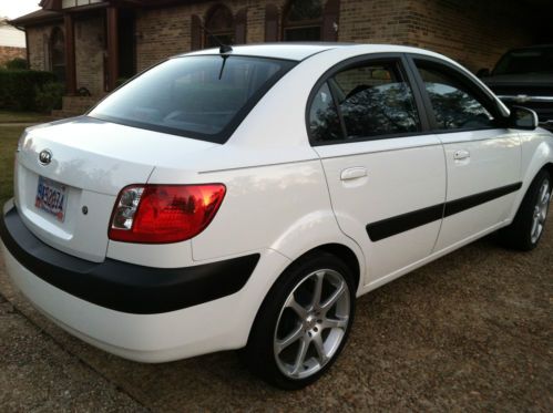 FOR SELL 2008 KIA RIO BASE IN EXCELLENT CONDITION, ONLY 62,000 MILES AND DRIVES AND HANDLES LIKE NEW, NO DISAPPOINTMENTS ON THIS CAR AT ALL. IT HAS AFTERMARKET 18' WHEELS AND THE TIRES IN THE FRONT HAVE 2000 MILES ON THEM, IT HAS ONE LITTLE DENT UNDER THE DRIVER'S DOOR LOCK (MY WIFE DID IT IN OUR GARAGE WITH HER CAR) AND VERY FEW SMALL CHIPS (FROM REGULAR USE AND DRIVE) THE PAINT IS IN GREAT CONDITION AS WELL AS THE INTERIOR, THE ONLY SIGN OF WEAR IS ON THE DRIVER'S FLOOR MAT.