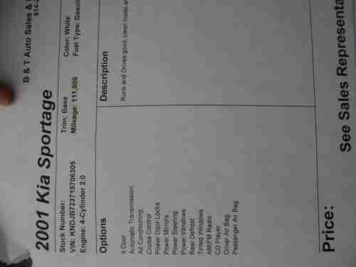2001 Kia Sportage Ex Sport Utility 4-door 2.0l on 2040-cars