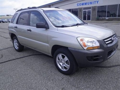 1 owner zero accident clean carfax! Local trade in! 2007 model Sportage LX. Champagne exterior, tan cloth interior. 2.0L 4 cylinder, automatic transmission front wheel drive. All the power features, tilt, cruise control, air conditioning and AM/FM CD player. Keyless entry. Nice clean economical SUV!
