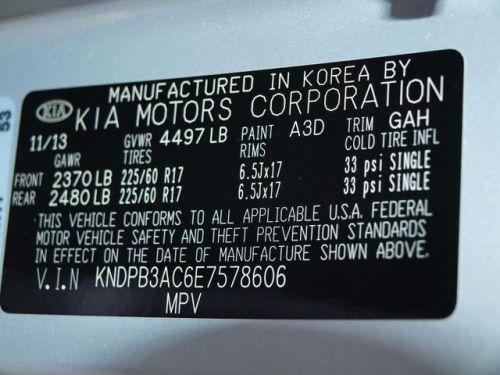 VIN (Vehicle Identification Number): KNDPB3AC6E7578606