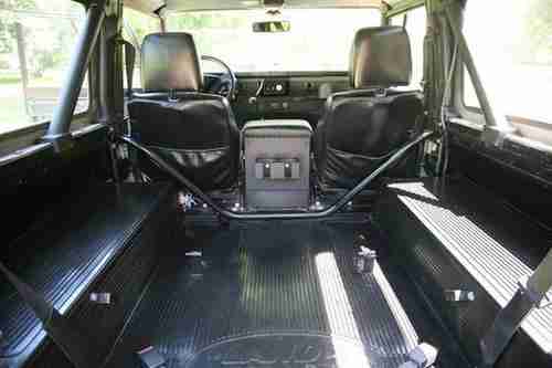 Premium Options include: Adjustable Front Seats, Marine 4 speaker Sound System w/ 6 disc CD changer mounted in a "Tuffy" Box, 16 Genuine Land Rover Nato Wheels wrapped in 225/85/16 BF Goodrich Mud terrain tires, Class3 Towing/ Recovery package, ARB Air Locker front and back locking differential with upgraded ARB air compressor, Hardened Drive Shafts and Half Axles ,3 inch Old Man Emu lift kit, Warren XD-9000i winch, Safari off road under armor skid plates, Two Interstate Batteries on a isolator system, Stainless steel hoses, Dual Electric 12 Kenlow Cooling fans, Safari Guard Front bumper, Safari rocker panel guards/air tanks, 185 amp Bosh alternator with Premier Power Arc/Mig welder, Front and rear Hella lamps, Borla exhaust, Custom Ceramic coated headers, Genuine Land rover Snorkel, 14,000 lb winch anchor, Land rover roof rack with Jerry cans, plus more.