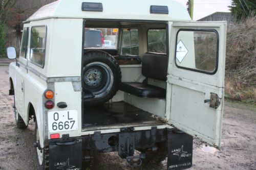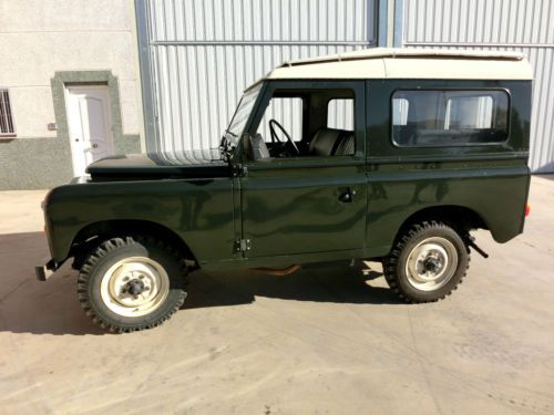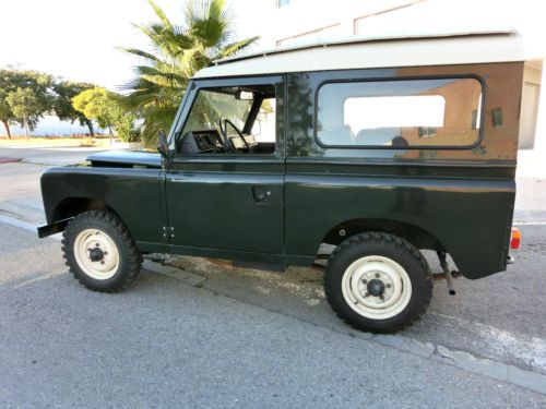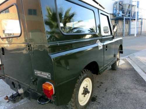 YES POWER STEERING..UNLIKE A LATER DEFENDER WITH POWER STEERING, THIS IS LIGHT AND POLITE TO DRIVE AND 2 FINGER PARKING AND REVERSING..NEVER THOUGHT I WOULD EVER SAY THAT WITH A LAND ROVER. ONE OWNER FROM NEW, FIRST MANUFACTURED 1977 WHERE LAND ROVER SANTANA SPAIN DATE OF FIRST REGISTRATION 20-05-1977 VIN, E57704093 TYPE 88 DIESEL LEFT HAND DRIVE 2250 4 CYLINDER 4 SPEED MANUAL GEARBOX. bought this on one of our european land rover and classic vehicle buying expeditions recently. with a massive choice of interesting vehicles bought, from a fire engine to several santana i personally decided to drive this vehicle as it had power steering, and in all my 55 years of living...and over 600 land rover owned and sold i have never owned a series land rover with factory option fitted power steering. its american light to drive. unlike the defender with power steering which is assisted power steering... this is full power steering. one owner, SENORITA MARIA JESUS FERNANDEZ POLLEDO who had it for her 33 rd birthday present. and has kept it ever since. was fully restored for her 50th birthday present and has been used ever since using the same garage all its life. not surprisingly i was met at the airport, half a tank of diesel and new fan belt included, along with all its paperwork and history. drive home took ages as was going from place to place looking and buying vehicles. inspected 34 vehicles of all types, and scooters.. and bought 8 of the bunch..3000 miles on 6 days in total.. i drove this vehicle 1644 miles on my own..in my own little slow world with people waving, truck drivers beeping their horns while overtaking...oh they where overtaking not me heheheheheehhe.. speed. on the original small tyres..50 mph. pulls like a train so a much larger tyre profile would give it an extra 10 mph which would be nice on the freeway. around town its same speed as anything else. so after 1644 miles..and driving in uk since..i collected the father in laws big wood trailer today..i can say from an engineers point of view...i know this vehicle inside out. faults as it sits in my workshop i have found. remembering its a 1977 commercial vehicle (the sticker on fender says its commercial in spain) 1. smokes on start up like most diesel do. this could be made better with injectors serviced and reset am sure..(we can quote for this) 2. front propshaft has play in the slider, normal thing..(we can quote for replacement) 3.rear chassis cross member is original. some wear and tear but is not a safety issue and tows trailer well.(we can quote for preventive chassis work) 4.washer jets not working..has original push button type(we can quote for new electric replacement system) 5.exhaust has a split near muffler, can weld up for free (we can quote for new exhaust system) 6.several age related land rover dings and dents (we can quote for all bodywork and paintwork including professional colour change. 7.most santana from spain do not come with winter heater. (we can quote to supply and fit series 3 cab heater and demister system) 8. being commercial in spain,.this santana does not have seat belts fitted (we can quote for seat belts and fitting service) other than that its a peach...to be honest..if i keep it i will weld the exhaust, service injection system and washer jets replacement and i would be very pleased to drive it as my second vehicle winter and summer. santana series where built in spain..in knocked down kit form KCD. it was clear early on improvement could be easily made to these vehicles but the british being stubborn would not listen,,,so santana land rover did their own improvements..like the hard top..built out of GRP RESIN and higher than original..cool in summer warm in winter..and no condensation. roof is approx 3 inches thick. wiring looms much improved. doors locks always work. and larger radiator fitted as standard. a much improved air filter setup from MANN in germany is used(stops the normal diesel engine boom and drone) along with many other small but useful improvements. the dollar is not good against the uk pound at present. not my fault blame the governments. but in the same breath, a lhd series 3 diesel that does 40 mpg with power steering is rarer than hens teeth, and with the knowledge of driving this vehicle all across the continent back to blighty you can buy it with personal insight to its condition. i encourage any inspection. we can provide a professional appraisal service totally independant if required, or will cater for the needs of your chosen inspector, a word of note..use a professional service not some chummy chummy owners club nerd who only wants to talk about their own vehicle. your money. i can ship worldwide. do ask for a quote. you can ship cheaper due to dollar rate. i will still help. or i offer a bespoke menu service so all you do is go to docks and drive away into sunset. i can arrange everything including paying your taxes and duties, customs agent etc. bespoke service starts from 2360 usd. includes everything. sales@v1twn.com 0044 1553 810318 uk times please. payment can be bank transfer- paypal accepted with buyer paying all fees__ or we will deal with something classic or useful.. harley servi car- early mustang- huge station wagon with plastic wood, extended work van..boss hoss....trike...indian motorcycle...do ask..dealing is fun.. also in stock is a fully restored show shine quality british racing green swb santana..but its $27340 usd shipped taxes paid. but it is the best of the best. no loony tunes please. too busy for that. be well. On Jan-25-14 at 08:05:15 PST, seller added the following information: saturday update. raining britain today so no sidecar racing. cold miserable and thats the good points. so...smoke has cleared. it was the fuel metering on the pump. i looked at one of my other santana and the adjustable mixture screw was in a different place. so i reset it ...engine running of course. henry the black lab and myself drove to the coast in this san