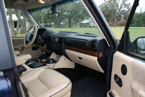 2003 Land Rover Discovery SE7 all wheel drive in near perfect condition, non smoker and has never been in an accident. Below is a list of what you get: 2003 Land Rover Discovery SE7 package All wheel drive 4X4 Five brand new 255/55/18 General Grabber AT2 tires Exterior is Navy blue in near perfect condition with only a few very minor chips Interior has tan leather in perfect condition with NO stains or oders what so ever The tan leather wrapped sterring wheel is in perfect condition Dual front and rear sunroofs with sun shades Front and rear ice cold A/C Front and rear hot heat Dual power front seats Heated seats Third row seating with headrest and rear entry step Every available option AM/FM stereo with 6 disc changer Steering wheel controls Rear stereo controls Keyless entry All owners manuals Front Land Rover grill gaurd with fog lights Rear tail light lens gaurds Heavy duty Land rover floor mats and rear cargo liner This is probably the cleanest low milage Discovery that is for sale, please feel free to have it checked out. Everything works as it should and I just had it serviced to include: Oil service, air filter, manifold gasket, and transmission service and new pan gasket Milage my change due to I still drive it from time to time The buyer is responsible for all shipping cost, however I will assist in any way I can I will require a $500.00 non refundable deposit via Paypal at the end of the auction I reserve the right to end the auction early being that it is for sale locally |