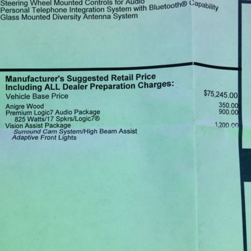 Mfr Warranty Good until July 2016 - or 50,000 miles. Premium Logic7 Audio Package Angire Wood package Vision Assist package Heated seats - front and back Heated steering wheel Heated windscreen and washer jets. Bluetooth, Ipod, and USB connectivity |
