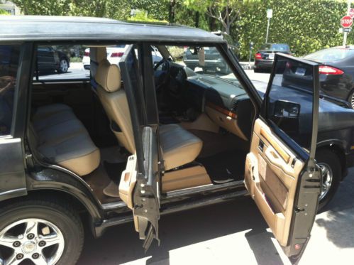 location. Truck has Tom Walkenshaw Racing kit (TWR). A small number of U.S. Range Rovers (only SWB model) were sold with a body-styling kit designed by Tom Walkenshaw Racing (TWR) that was not included in the standard County Classic. The TWR body kit was first introduced back in 1991 on the European Brooklands model that was never sold in North America. In February 1995 LRNA issued a press release that said: "The TWR kit adds a unique and attractive appearance to the classic Range Rover. The kit is specially fitted at the Factory and is available on a limited number of Epsom Green and Beluga Black County Classics. Front bumper has steel Brush Guard. The leathers seats are beautiful, no “wear and tear” (they were re-upholstered to the original classic interior 2 years ago. No scratches or tears. They look brand new. The interior is in excellent condition, clean, working seats, power windows, and locks all work- seats were re-upholstered to the original classic interior 2 years ago. No smoking, no pets. Sunroof works. There are a few small blemishes here and there on the body- a scratch or scrape here and there but for a 1995 it looks pretty great inside and out. The paint on the hood and the roof is fading so eventually it will need to be painted. Overall, the truck