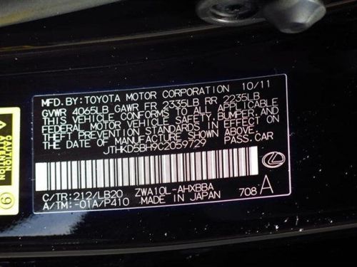 VIN (Vehicle Identification Number): JTHKD5BH9C2059729