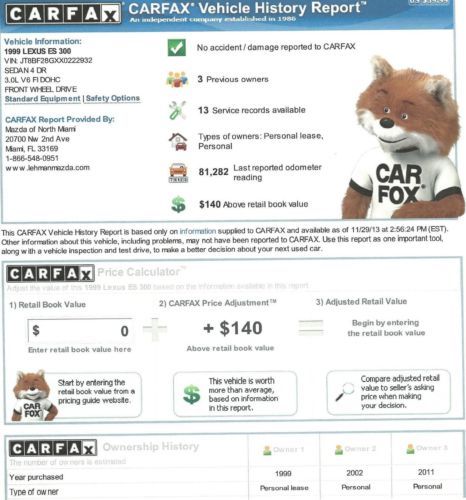 1999 Es 300 Leather Sunroof Carfax Certified Excellent Condition Very Low Miles on 2040-cars