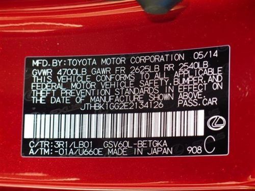 VIN (Vehicle Identification Number): JTHBK1GG2E2134126